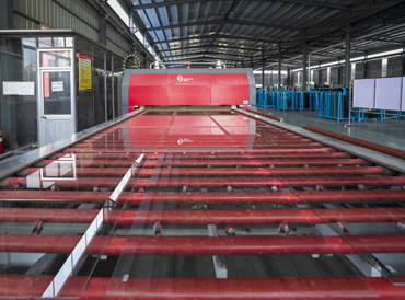 公司始終堅持以市場為導(dǎo)向,不斷引進(jìn)國際、國內(nèi)先進(jìn)的生產(chǎn)加工設(shè)備和工藝加工技術(shù),嚴(yán)格產(chǎn)品質(zhì)量及高水準(zhǔn)服務(wù)市場需求。目前已擁有新智能型平彎強制對流鋼化玻璃生產(chǎn)線2條,全自動切割生產(chǎn)線3條,8米高壓釜夾膠線1條,6米高壓釜夾膠線1條,立式打孔機1臺,水切割1臺,中空玻璃生產(chǎn)線6條,清洗機4臺,異形磨邊機6臺,專業(yè)玻璃鉆孔機4臺等數(shù)十臺設(shè)備。